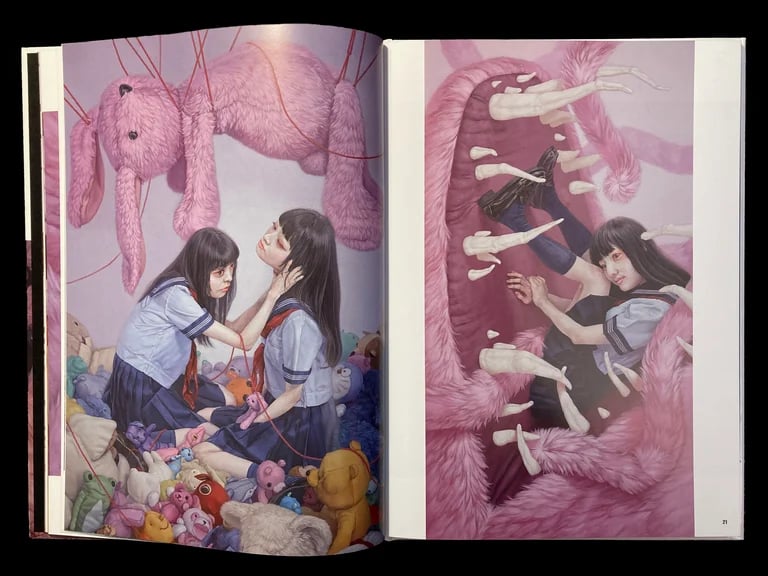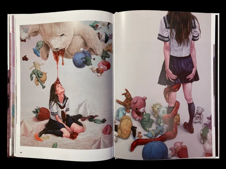 This book is the first monograph devoted to the work of Kazuhiro Hori. Through a selection of his most emblematic paintings, it offers an introduction to the oppressive universe of the Japanese artist, populated by anemic teenagers and evil stuffed animals. We will discover these strange high school girls who, in settings littered with toys, sweets, disturbing and familiar objects, engage in painful, intrusive, non-consensual and sometimes traumatic exchanges. By traveling through this fascinating and unique parallel world, we will be able to glimpse a part of its mystery and appreciate its unspeakable beauty.